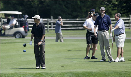 In re the golf photo, there was a sweet headline on the Borowitz Report this week: Obama Rips Bankers Not Already in Cabinet.