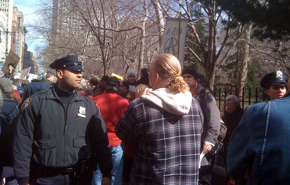 I had a more positive impression of that demo, maybe in part because I couldn’t hear the speakers. I was handing out flyers for an event on Egypt – http://www.nycsocialist.org/2010/04/revolution-in-egypt-another-world-is.html – and got a lot of enthusiastic response.