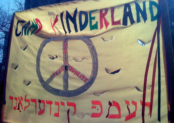A few of the signs. Here’s one for Camp Kinderland, an old, mostly Jewish, Commie children’s camp in the Berkshires. Among its more distinguished alumni: progressive educator Michael Klonsky, right-wing pundit Sol Stern, Nation associate publisher Peter Rothberg, and actress Marisa Tomei.