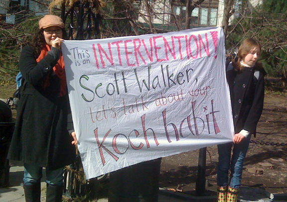 This morning, New York City joined many other localities around the USA in mounting demonstrations in support of the Wisconsin workers. It was nothing like Madison, let me tell you.