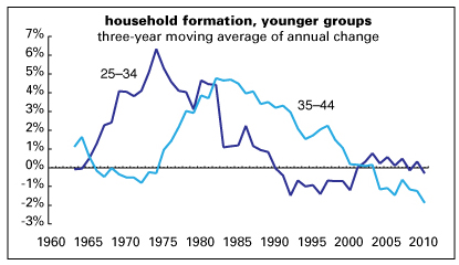 I’m not sure, but looking at the rate of housebuilding looks like a good idea to me. You need to know whether the rate at which houses are built matches the growth in households, and whether it is sufficient to replace the existing stock. Can it be true that household formation is falling off? That seems very counter-intuitive. The trend in Europe is for more, but smaller, households to be formed. I thought that the US population was booming?