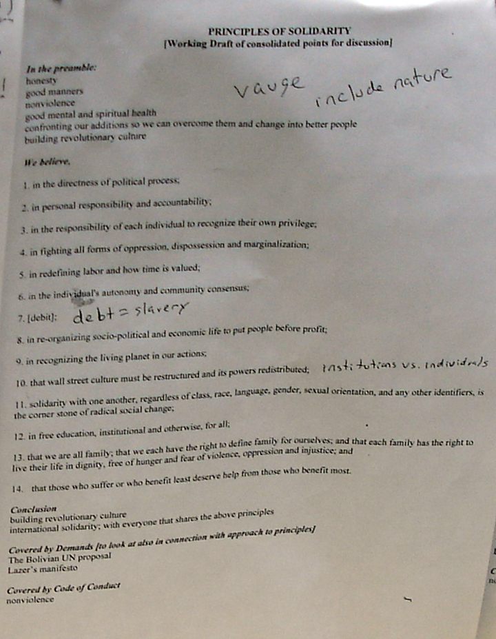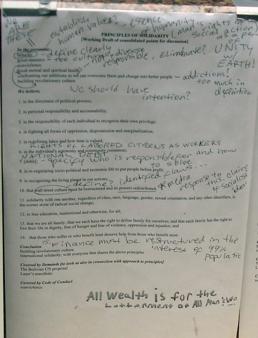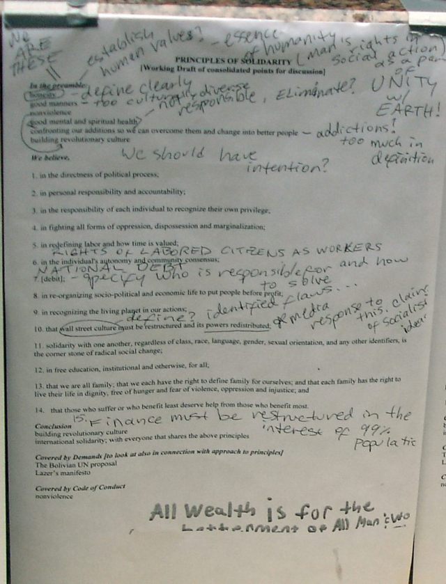 They released a list of demands to vote on, and I gotta say they bring up some legitimate debates at very least. As a young adult, I look around and see that selfishness and manipulation are becoming the defining characteristics of the history in which I live. Not only is it legal, but it is rewarded, and applauded. I think the zeitgeist that they tap into is refusal of the culture of greed, it is reawakening the holistic and compassionate approach to the world. I for one am very glad it is happening and hope to see it mature.