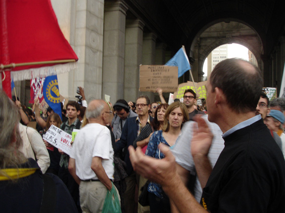 Great post. It was indeed an inspiring gathering. The crowd was so large that the People’s Microphone (the OWS method of broadcasting a speaker’s unamplified voice by listening and then repeating en masse) required 7-10 relays of shouts for the speaker’s words to reach the back of the crowd.