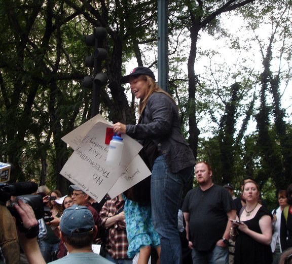 It was a spirited gathering, and Penny was terrific, but I was a little worried that the demo would turn out to be an anticlimax. Still, the cops were ready—on the ground