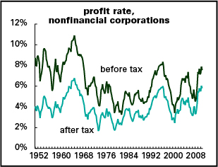 Or take profits. As the bull market was about to take off in 1982, the financial sector claimed 12% of pretax profits in 1982; that nearly tripled to 34% at the 2008 peak. It fell by more than half in the heat of the crisis, to 15% at the end of 2008—but it back to nearly 30%. That’s a remarkable share for a sector that employs less than 6% of the workforce.