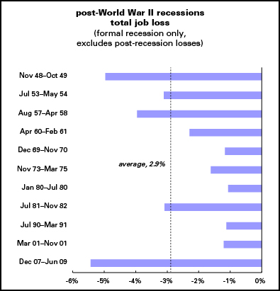 It was an awful recession. GDP, your orthodox economist’s favorite measure, contracted by over 4%, more than twice post-World War II recession average. The downturn officially lasted six quarters, a year and a half, two quarters longer than the average. Employment, the measure that matters most to regular people, fell by over 5%, almost twice the post-World War II average—and then fell by another 1% after the recession ended.